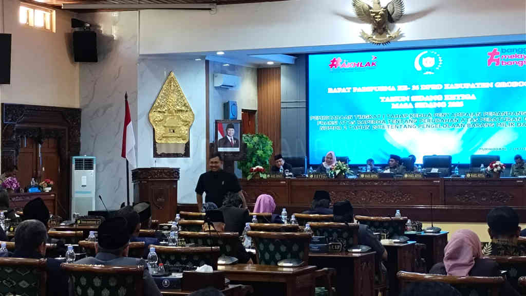 Fraksi PKB Grobogan mempertanyakan alasan diubahnya Raperda tentang Perubahan atas Perda Nomor 2 Tahun 2018 mengenai Pengelolaan Barang Milik Daerah. Hal itu disampaikannya dalam rapat paripurna di gedung setempat, Kamis (2/10/2025).