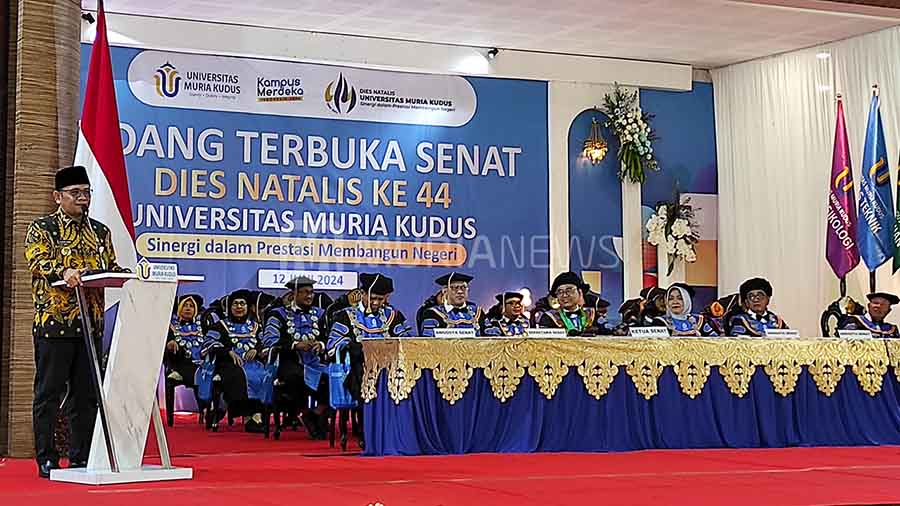 Acara Dies Natalis Universitas Muria Kudus (UMK) ke-44 yang dilangsungkan di gedung Auditorium UMK, berlangsung semarak, Kamis (20/6/2024) malam. Semaraknya acara dies natalis itu, salah satunya adalah berkat hadirnya pelawak Cak Percil
