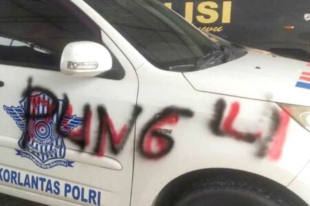 Dinding Polres Luwu jadi korban vandalisme dengan tulisan ”Sarang Pungli” dan ”Sarang Korupsi�...