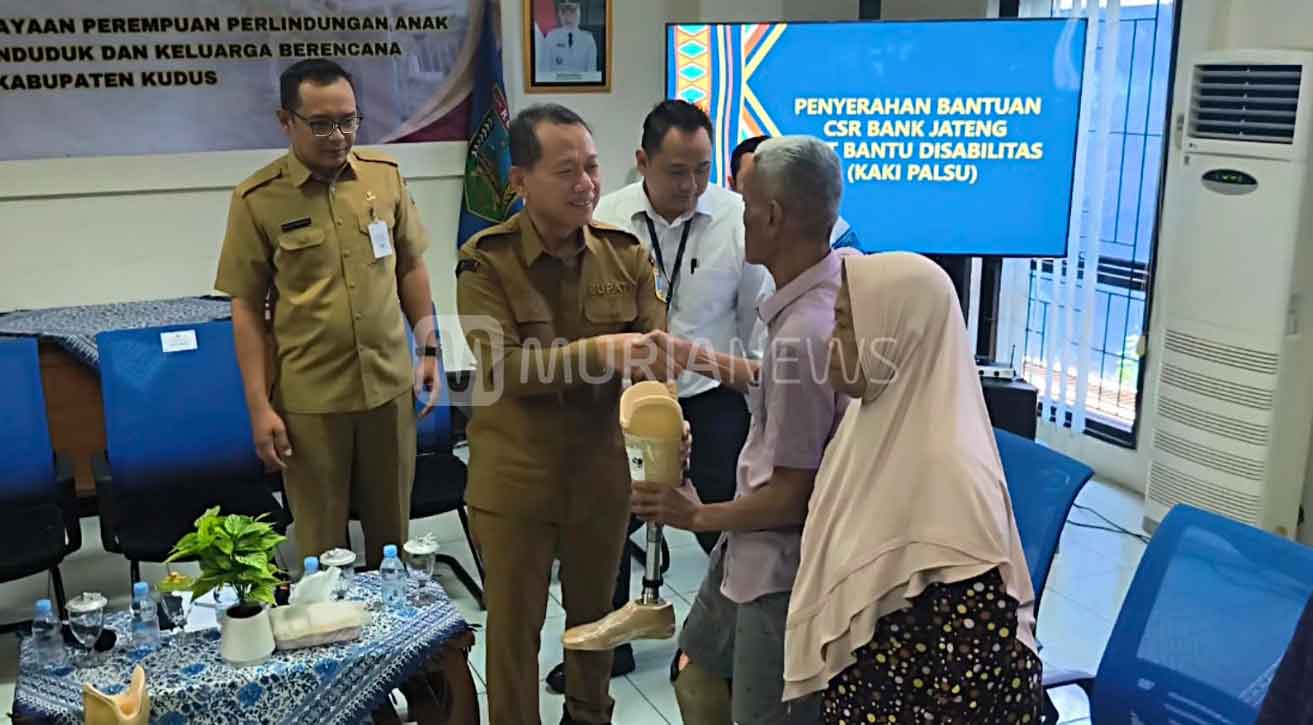 Sebanyak 27 orang penyandang disabilitas mendapat bantuan dari Pemerintah Kabupaten Kudus berupa kaki palsu. Bupati Kudus, Samani Intakoris menyerahkan bantuan secara langsung sekaligus memberikan semangat kepada penerima manfaat.