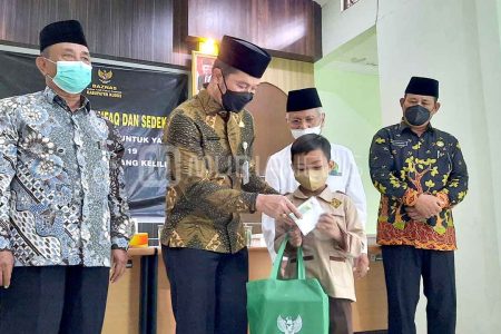 Wakil Presiden RI Ma’ruf Amin menyerahkan bantuan beasiswa pada para santri. Beasiswa dari Badan A...