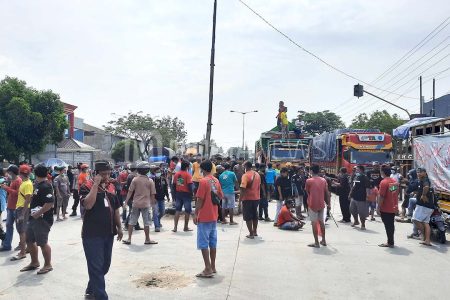 Ratusan mahasiswa di Kabupaten Kudus, Jawa Tengah melakukan aksi solidaritas di depan Polres Kudus, Jumat (29/8/2025) malam.