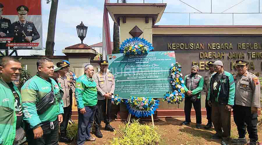 Seorang driver ojek online, Affan Kurniawan meninggal dunia usai terlindas kendaraan taktis (Rantis) Brimob Polda Metro Jaya, di Demo Jakarta. Polresta Pati memasang karangan bunga sebagai bentuk belasungkawa.