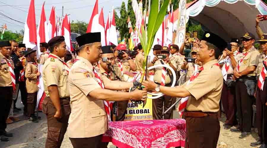 Estafet Tunas Kelapa mampir di Grobogan, Jawa Tengah, Selasa (22/8/2023) pagi tadi. Estafet ini dilakukan tepat di perbatasan Grobogan - Blora, yakni tugu sate di Kecamatan Kunduran, Blora.