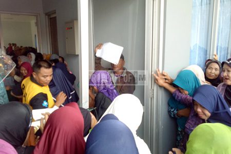 Pembagian uang pesangon para pekerja PR Gentong Gotri diwarnai dengan insiden pecahnya kaca pada ...