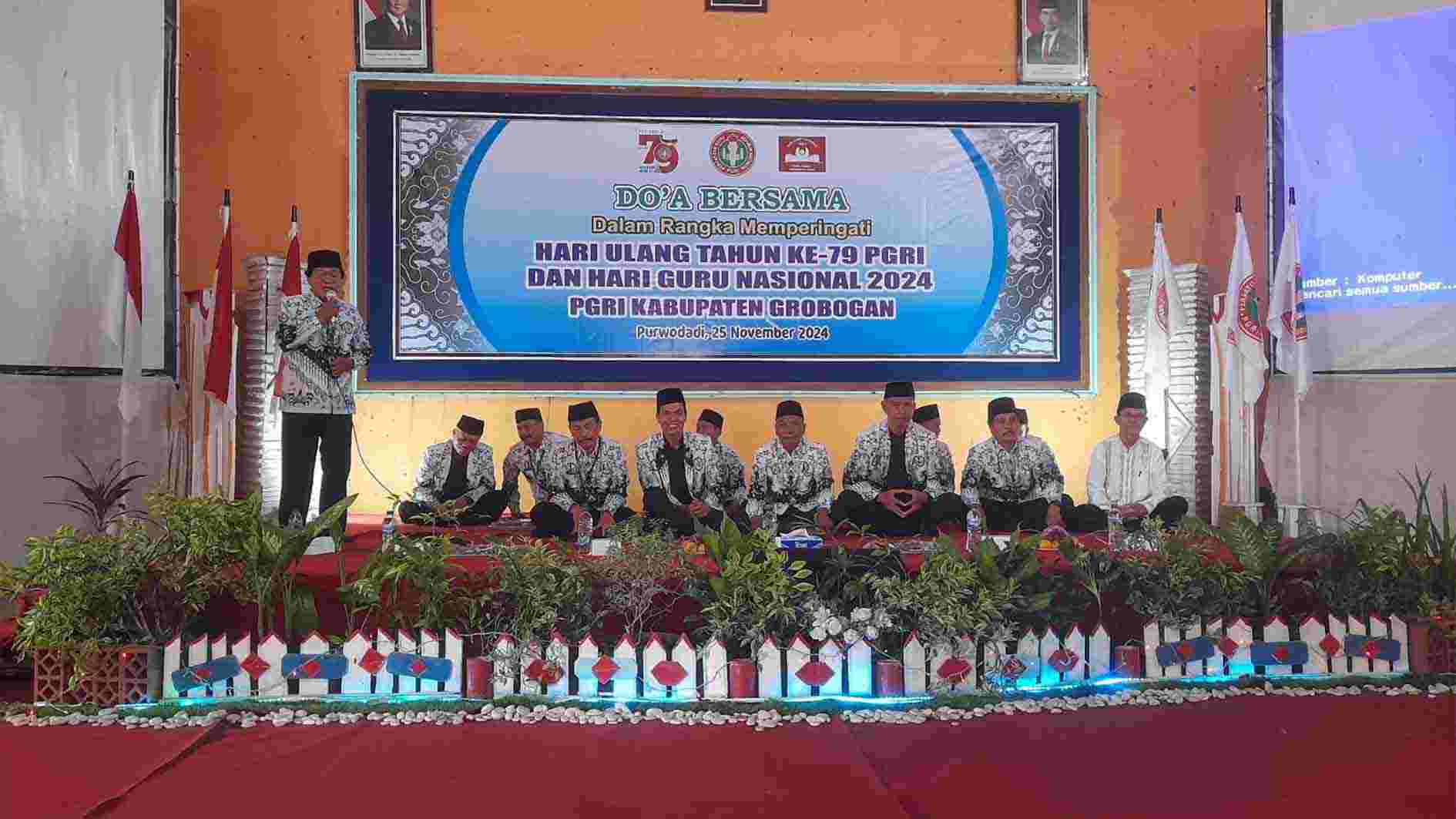 Sejumlah guru di Kecamatan Margoyoso, Kabupaten Pati, Jawa Tengah memperingati Hari Ulang Tahun ke-79 Persatuan Guru Republik Indonesia (PGRI) dan Hari Guru Nasional, Selasa (22/10/2024). Mereka menampilkan tari massal di acara itu.