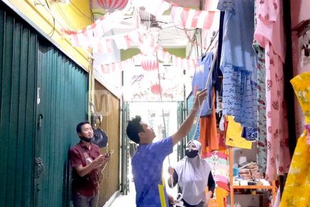 Ratusan bendera merah putih berukuran mini di atap mengiringi langkah pembeli yang ingin berbelanja ...