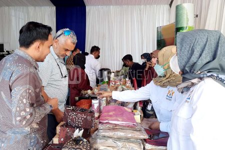 Kamar Dagang dan Industri (Kadin) Kabupaten Kudus, Jawa Tengah ikut memamerkan sejumlah produk UMK...