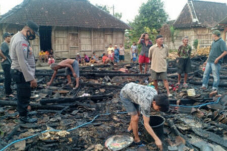 Kebakaran terjadi di rumah milik Ngadiman (60) di Dusun Panjunan, Desa Karangsari, Brati, Grobogan, Jawa Tengah, Kamis (10/8/2023) malam. Dalam kejadian ini, dua ekor sapi juga turut terbakar hingga kerugian mencapai Rp 100 juta.