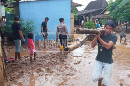 Banjir bandang terjadi di aliran Sungai Rejasa, Kabupaten Pemalang, Rabu (24/4/2019). Akibat banjir ...