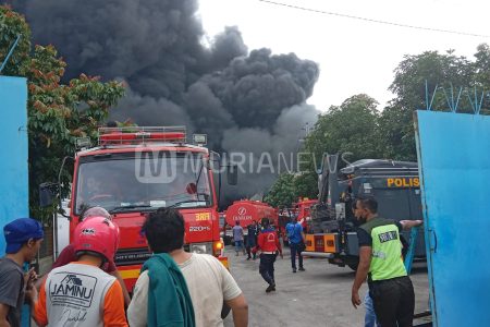 Pabrik plastik PT Starindo Jaya Packaging di Jalan Pati-Kudus mengalami kebakaran, Sabtu (12/2/2022)...