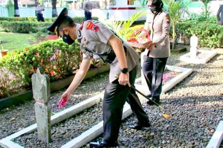 Kapolres Grobogan AKBP Dedy Anung Kurniawan dan sejumlah personel berziarah ke Taman Makam Pahlawan ...