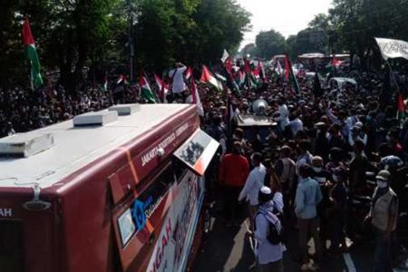 Suasana di depan Gedung Dewan Perwakilan Rakyat Daerah (DPRD) Kabupaten Pati memanas menjelang sidang Pansus Pemakzulan yang menghadirkan Bupati Pati Sudewo, Kamis (2/10/2025).