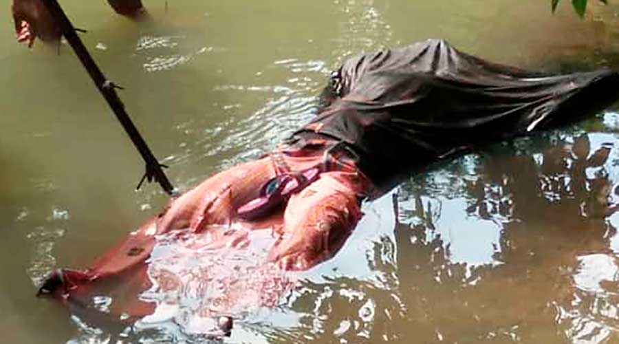 Mayat perempuan tanpa identitas yang ditemukan di Sungai Lunyu di Dukuh Nglumpang, Desa Karangkepoh,...