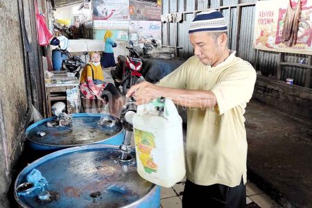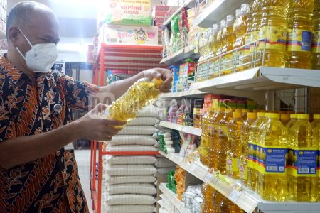 Pasar Baru di Kelurahan Wergu Wetan, Kabupaten Kudus, Jawa Tengah didropping minyak goreng merek Min...