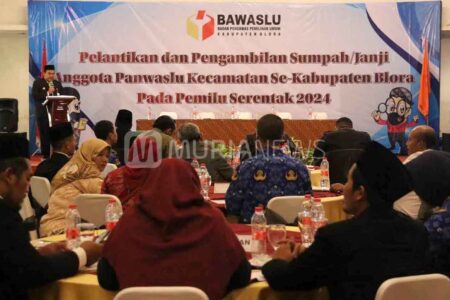 Sebanyak 48 Panitia Pengawas Pemilu Kecamatan (Panwascam) di Kabupaten Jepara, Jawa Tengah resmi dilantik, Jumat (24/5/2024) di Pendapa RA Kartini. Mereka didominasi oleh wajah-wajah lama yang sebelumnya sudah menjadi panwasca