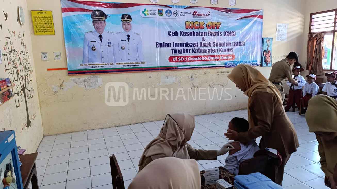 Pemeriksaan Kesehatan Gratis (PKG) untuk siswa sekolah telah dimulai di Kabupaten Kudus, Jawa Tengah, Senin (4/8/2025). Agenda PKG untuk siswa sekolah ini perdana digelar di SD 1 dan SD 6 Cendono, Desa Cendono, Kecamatan Dawe.