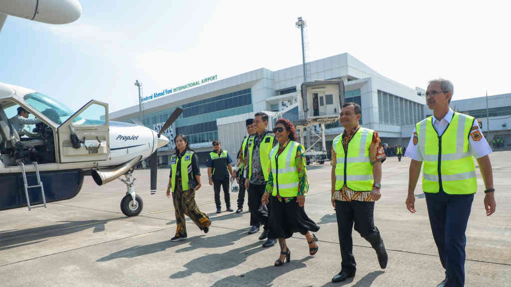 Maskapai penerbangan Susi Air melakukan penerbangan perdana ke Bandara Dewadaru, Kepulauan Karimunjawa, Kabupaten Jepara, Jawa Tengah (Jateng), Jumat (4/7/2025). Penerbangan perdana itu berhasil dan sukses.