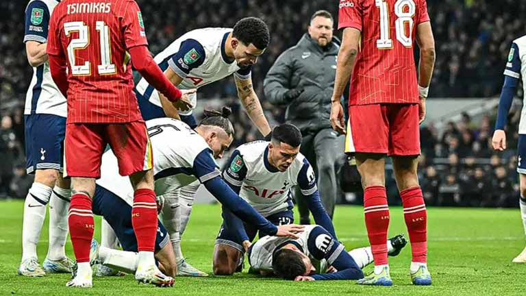 Rodrigo Bentancur mengalami cedera serius di awal pertandingan semifinal leg pertama Piala Carabao 2024/25 antara Tottenham vs Liverpool, Kamis (9/1/2025) dinihari WIB. Gelandang Tottenham asal Uruguay itu hanya bertahan beberapa menit di lapangan se
