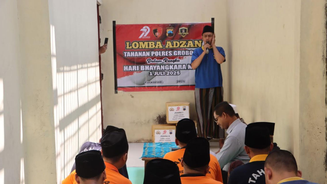 Suara azan terdengar melengking dari balik ruang tahanan Polres Grobogan, Jawa Tengah pada Selasa (17/6/2025). Bukan karena ada musala di dalamnya, namun karena sedang ada Lomba Azan yang diikuti belasan tahanan Polres Grobogan.