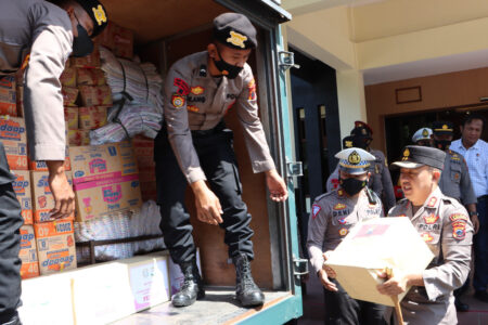 Polres Grobogan mengirimkan ratusan paket bantuan logistik kepada korban bencana gempa di Kabupaten ...