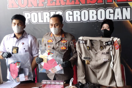 Polres Grobogan membekuk empat orang dalam kasus perampokan dengan modus menyamar sebagai anggota po...