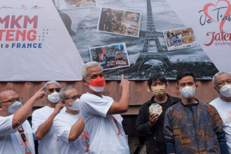 Gubernur Jawa Tengah (Jateng) Ganjar Pranowo kembali melepas ekspor produk UMKM Jateng ke berbagai p...