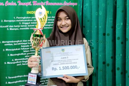 Siswi SMP NU Al-Ma'ruf Kudus berhasil meraih peringkat ketiga cabang lomba <em>solo song </em>pada F...