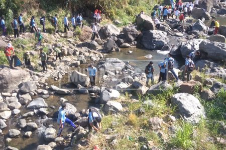 Ratusan warga dan mahasiswa di Desa Rahtawu Kecamatan Gebog membersihkan sungai gelis turut desa set...