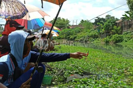 Aliran air Sungai Pendo dan sejumlah sumur milik warga di Desa Mejobo, Kecamatan Mejobo, diduga terc...