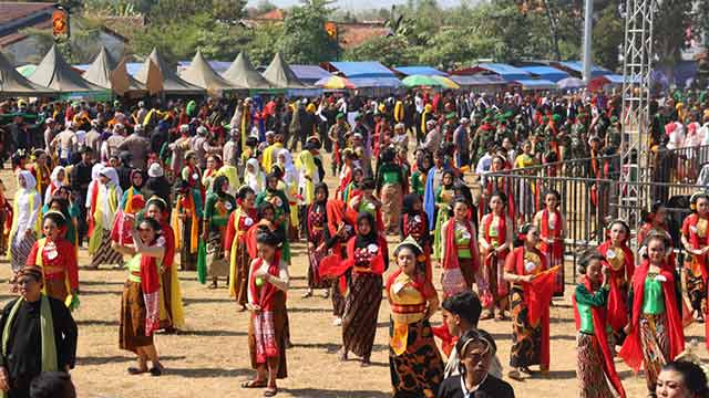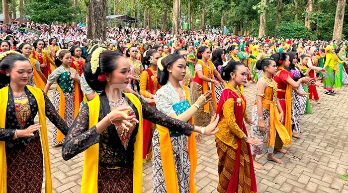 Gelar 3000 Penari Tayub Blora yang digelar di lapangan Kridosono, Blora, Jawa Tengah, Sabtu (7/9/2024) menjadi rangkaian acara penyerahan Sertifikat Pencatatan Inventarisasi dari Kementerian Hukum dan HAM (Kemenkumham).