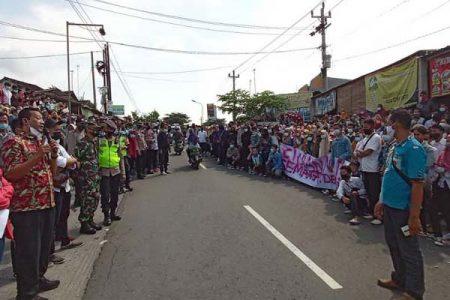 Puluhan warga Dukuh Guwo, Desa Gadingrejo, Kecamatan Juwana, Kabupaten Pati, Jawa Tengah menggelar unjuk rasa (demo), Rabu (23/4/2025).