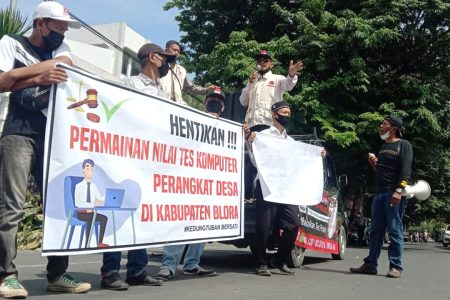 Puluhan massa yang tergabung dalam pemantau keuangan negara (PKN) Kabupaten Blora menggelar <a title...