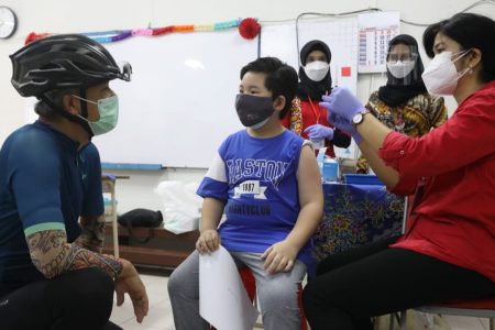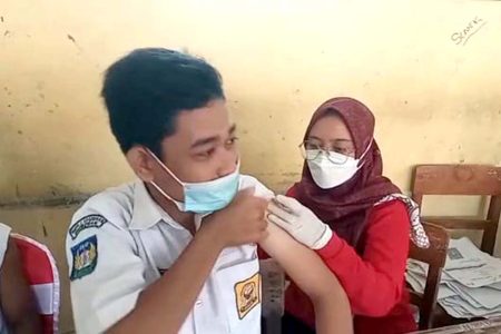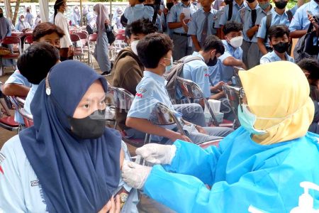 Sebanyak 354 siswa SD Supriyadi Kecamatan Pedurungan, Kota Semarang menerima suntikan vaksin dosis p...